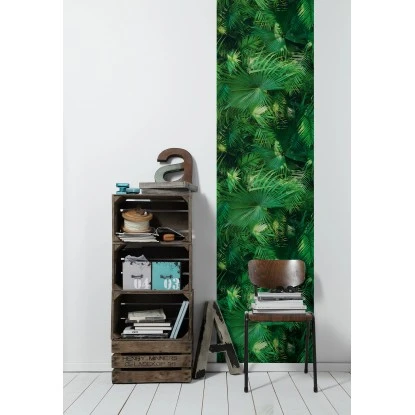 Kreieren Sie individuelle Looks und setzen Sie stilvolle Akzente mit dem tropischen Dschungel-Motiv. Die hochwertige Deko-Tapete in Regenwald-Optik beeindruckt durch ihre strukturierte Oberfläche, die einen einzigartigen 3D-Effekt erzeugt und dadurch die Palmenblätter echt erscheinen lässt. Das exotische Pflanzen-Motiv in Grün ziert das gesamte Panel und verleiht jedem Raum ein tropisches Feeling. Das Panel misst eine Länge von 250 cm und eine Breite von 52 cm.