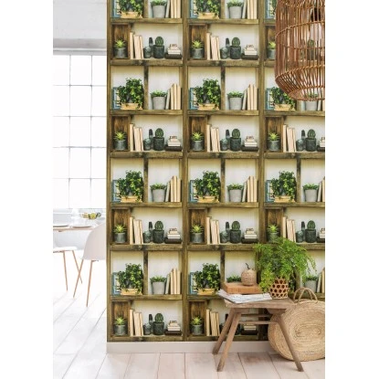 Authentische Holz- und Stein-Optiken, detailgetreue, fotorealistische Shabby-Chic-Schränke, Bücherregale und vertikale Indoor-Gärten sowie grafische Muster mit 3D-Effekten -die vielfältigen Wandoutfits der Kollektion Authentic Walls 2 bieten Motivwelten, die den angesagten Urban Chic und Industrial Style erst perfekt machen.