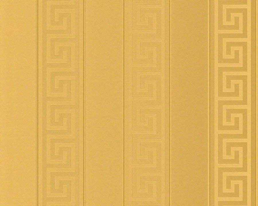 Goldene Designertapete aus dem bekannten Modehaus Versace. Exquisite Werkstoffe wie Vlies und Satin sorgen für eine leicht glänzende, textile Optik und ein einfaches Handling in der Verarbeitung. Versace ist bekannt für sein Spiel mit neobarocken und neoklassizistischen Motiven, das auch die Gestaltung dieser klassischen Designertapete mit ihrem schimmernden Goldton bestimmt.