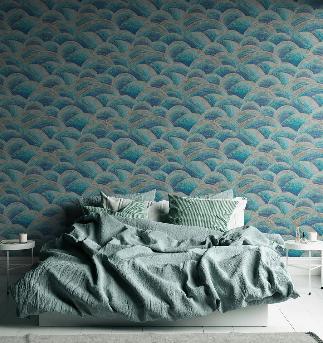 Durchaus stofflich wirkt die grafische Vliestapete Davy Blau in ihrer leichten Struktur, mit ihren schwungvoll gezeichnet und gemalten Bögen und Wellen in frischen Blautönen. Die goldmetallsichen Highlights bringen kunstvoll ein wenig lässige Eleganz mit ins Spiel. Eine Tapete, die jede Wand zum Highlight modernen Wohnens macht.