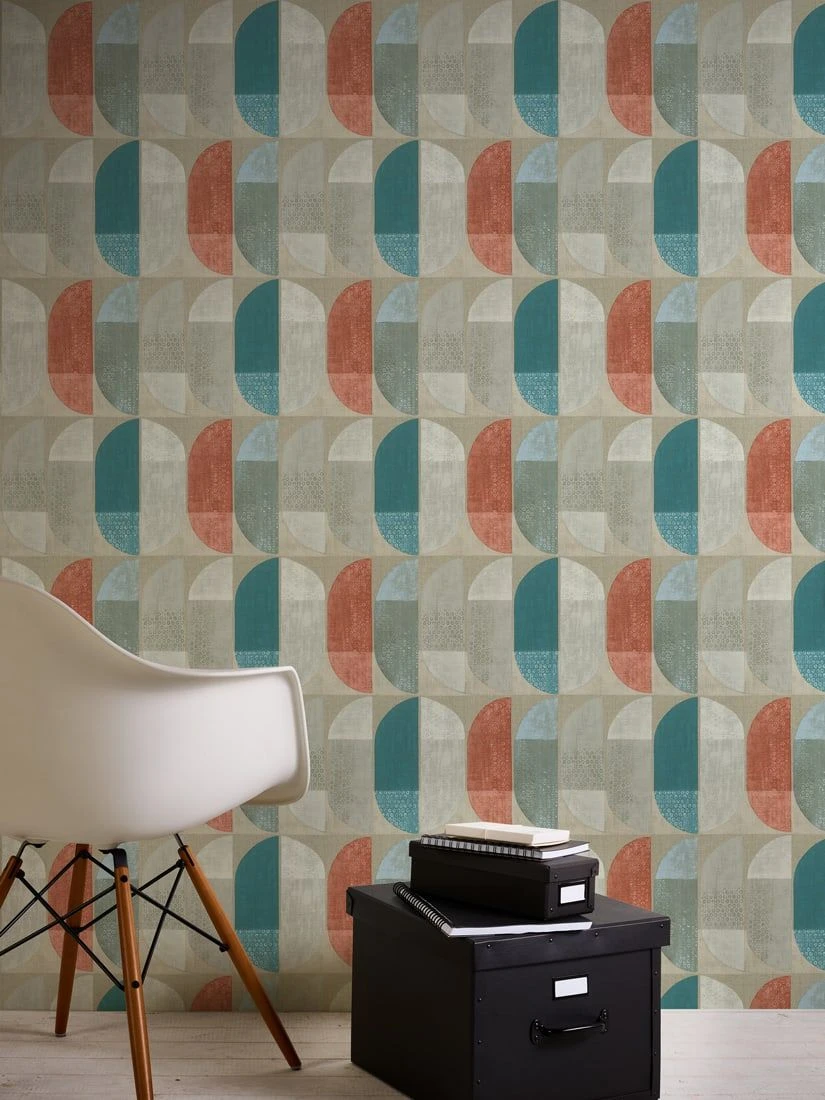 Tapete Gravity aus der Kollektion „Geo Nordic“ bezaubert mit nordischem Charme und verbindet die geometrische Musterung mit einer warmen Farbwelt, die voller Gemütlichkeit, dem nordischen Hyggefeeling punktet. Farblich setzt die Tapete sich aus einem blau, grau und orange auf beigen Hintergrund zusammen und besitzt eine leichte Prägung, die das heimelige Gefühl verstärkt. Gravity ist rundum eine Tapete, die für Wohlfühlmomente in den eigenen vier Wänden sorgt.