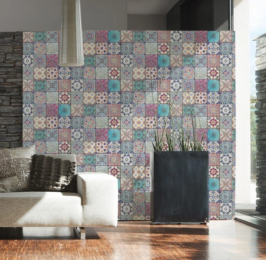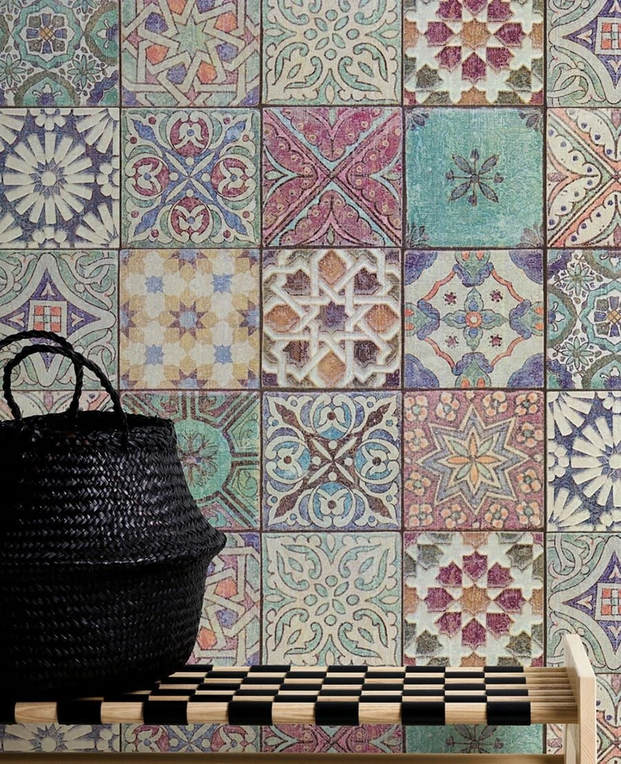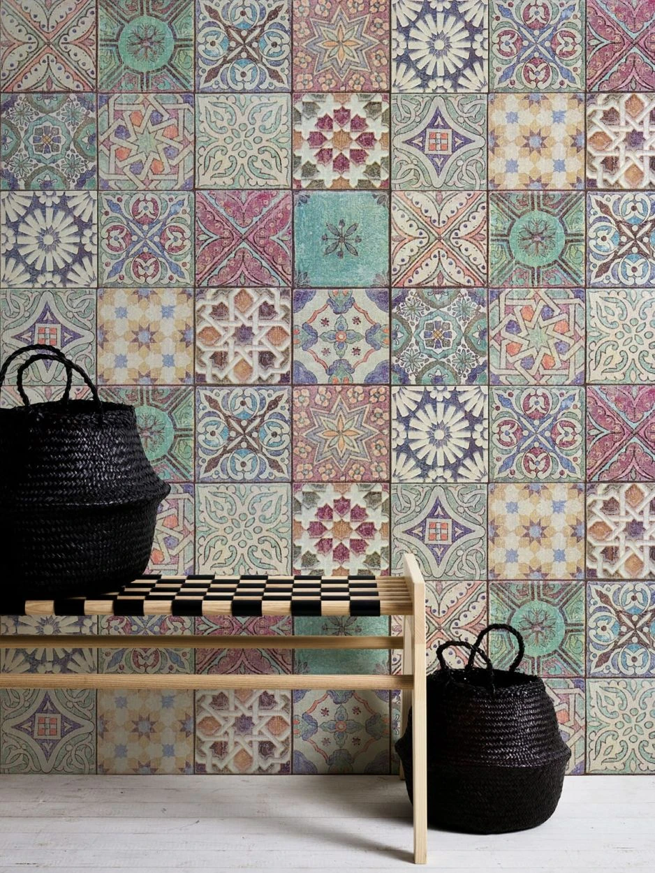 Tapete Ottavio überzeugt im angesagten Fliesenmuster. Die Zusammenstellung der Muster erinnern an den Süden und besteht aus einer gedeckten, aber intensiven Farbvielfalt. Die hochwertige Verarbeitungsweise sorgt für eine scheuer- und lichtbeständige Oberfläche, die unter anderem, perfekt für die Küche geeignet ist.