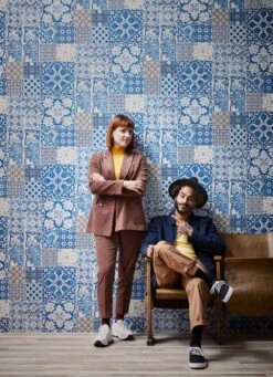 Das Dessin der Tapete Salvatore besteht aus bunt gemischten Kacheln, die sich eng aneinander fügen und ein gemütliches Gesamtbild erzeugen, dass an die Straßen Lissabons erinnert. Die Oberfläche ist langlebig und weich in der Haptik.