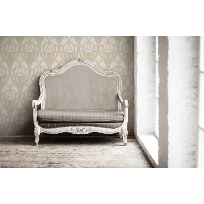 Zarte pastellige Tapeten mit seidenmattem Glanz und floralen Mustern in Taupe, Champagner, Rosa, Mintgrün und zartem Blau erzeugen harmonische Stimmung und transportieren die natürliche Schönheit des Jugendstils.