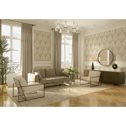 Glanzeffekte und Metallic Farben lassen die Tapeten edel erstrahlen und vollenden das opulente Wanddekor.