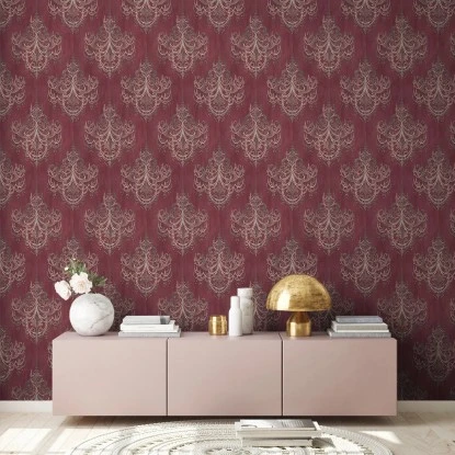 Vliestapete Barock Kronleuchter Rot Rosa FSC®