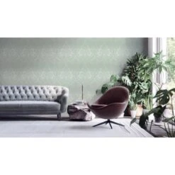 Vliestapete Barock Ornament Glänzend Glatt Eukalyptus Grün Silber FSC®