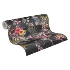 Vliestapete Blumenoptik Floral Matt Glatt Schwarz Grün FSC®