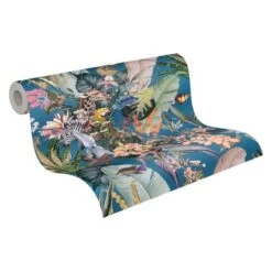 Vliestapete Blumenoptik Tiere Matt Glatt Blau Gelb FSC®