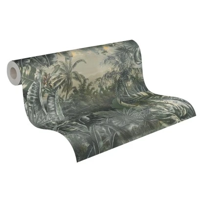 Vliestapete Dschungel Matt Leicht Strukturiert Dunkelgrün Olivgrau FSC®