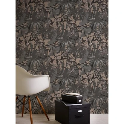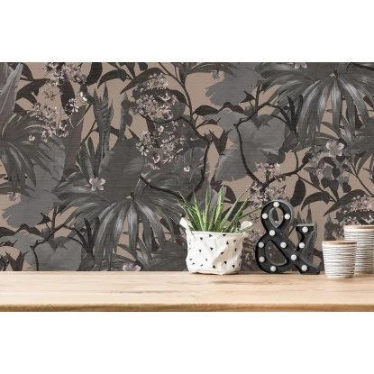 Vliestapete Dschungeloptik Palmen Matt Leicht Strukturiert Grau Braun FSC®