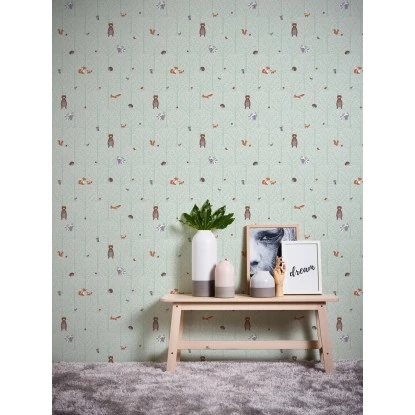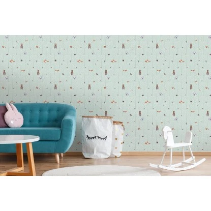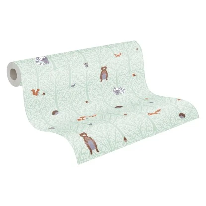 Vliestapete Wald Tiere Kinderzimmertapete Grün FSC®